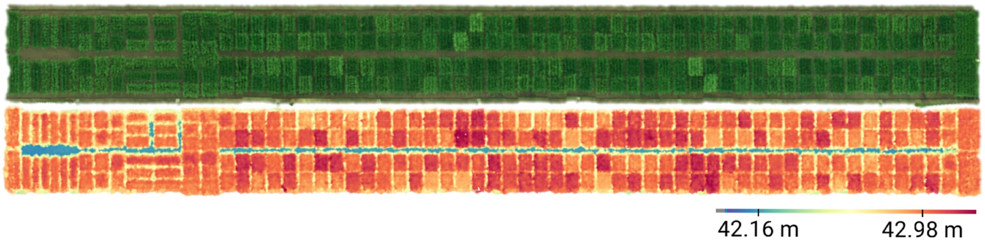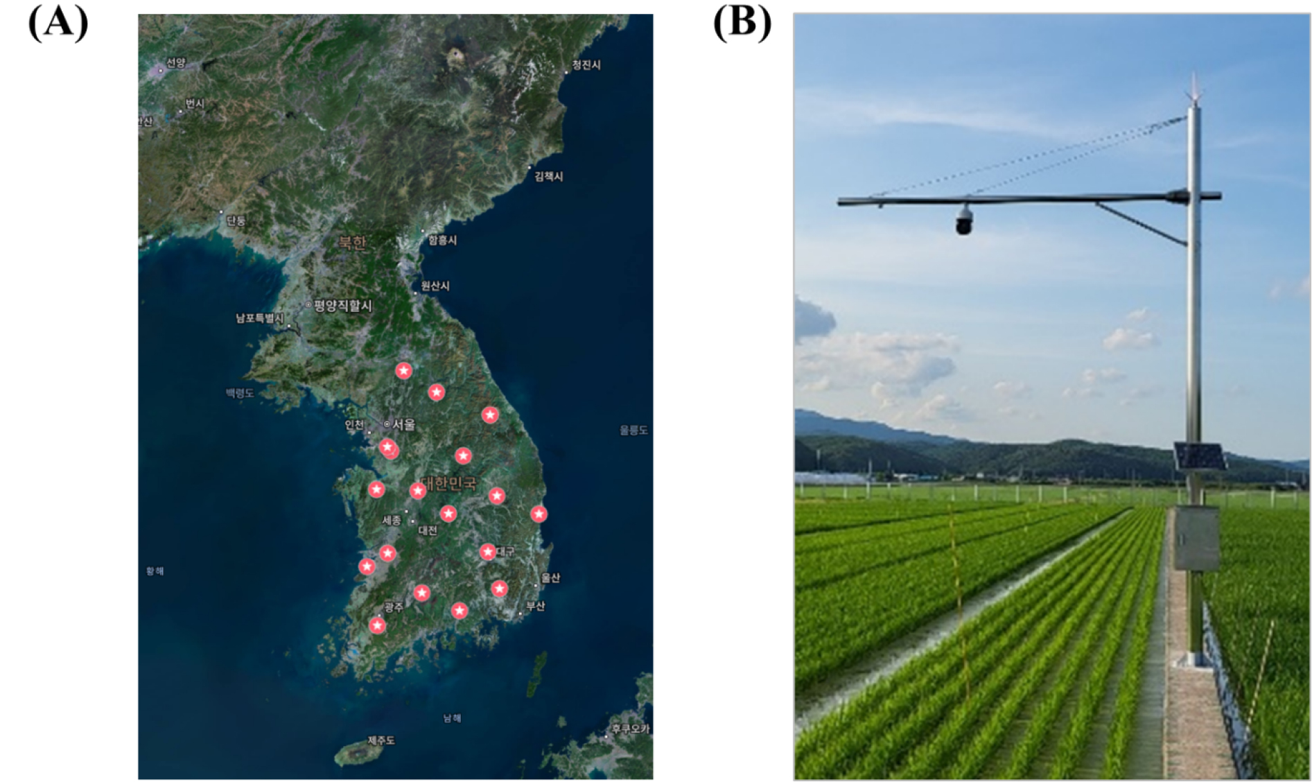 - Rice is a staple food for approximately half of the global population and accounts for about 46% of total cultivated land in South Korea. In recent years, climate change and rural aging have increasingly limited labor-based crop management, driving demand for scientific and efficient crop monitoring technologies. In this study, we utilized Unmanned Aerial Vehicle (UAV)-based Digital Surface Models (DSM) to calculate the absolute growth rate (AGR) of rice and classified 70 accessions into two groups based on AGR differences before and after the reproductive stage. We then analyzed the relationship between growth characteristics and yield components between the groups. The results showed that Group B, which exhibited continued growth in the late reproductive stage, had significantly higher AGR and yield than Group A. AGR during the reproductive stage was significantly and positively correlated with yield and grains per panicle. Most previous studies have either compared manually measured growth traits with yield, estimated vegetation indices using UAVs, or focused on plant height at a single time point. Thus, studies analyzing time-series growth rates or linking growth patterns with yield components remain limited. In particular, few studies have quantitatively compared productivity by grouping accessions based on growth responses across phenological stages. This study demonstrates the potential of UAV-derived DSMs as a tool for time-series growth monitoring and productivity assessment in rice. Although conducted in a single region with 70 accessions, this approach has strong potential for broader application across diverse environments and genetic resources. - COLLAPSE