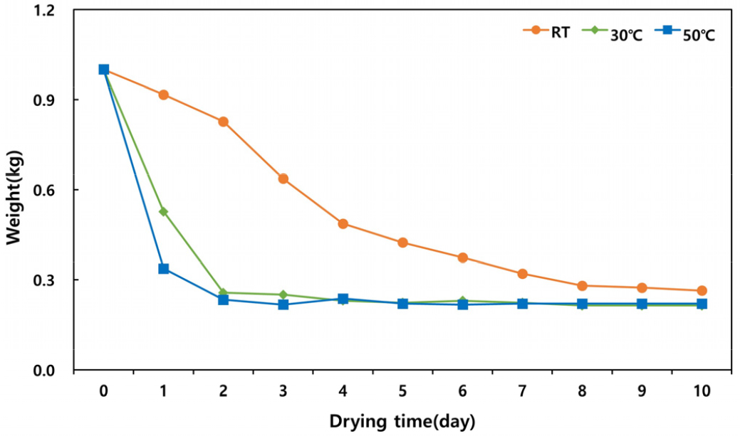 - This study determined the optimal drying and storage conditions, which are regarded as crucial post-harvest management technologies, for the production of high-quality husk of ‘Saekso 5’. To determine changes in the quality characteristics of the husk according to drying temperature, samples were dried at 30°C, 50°C and room temperature (RT). Samples dried at 50°C remained free from fungal contamination, whereas the quality of samples dried at 30°C and RT significantly decreased due to fungal infection. Except for moisture, there was no difference in general component content between samples dried at 30°C and 50°C. Furthermore, there was no significant difference in Cyanidin-3-glucoside (C3G) content, which is the husk’s main quality indicator. The storage test was conducted at three different temperatures (-5°C, 5°C and RT) for six weeks. Zearalenone mycotoxin levels exceeding safe intake limits were detected after two weeks in samples stored at RT; but samples stored at low temperatures were not contaminated with fungi. Quality analysis according to storage temperature showed that the moisture content at -5°C was changed less than that at 5°C, while the C3G content was maintained for up to one week. Therefore, to produce high-quality husk of ‘Saekso 5’, a drying temperature of 50°C is more effective than 30°C. If post-harvest storage is required, the husk can be stored at -5°C for up to one week. - COLLAPSE